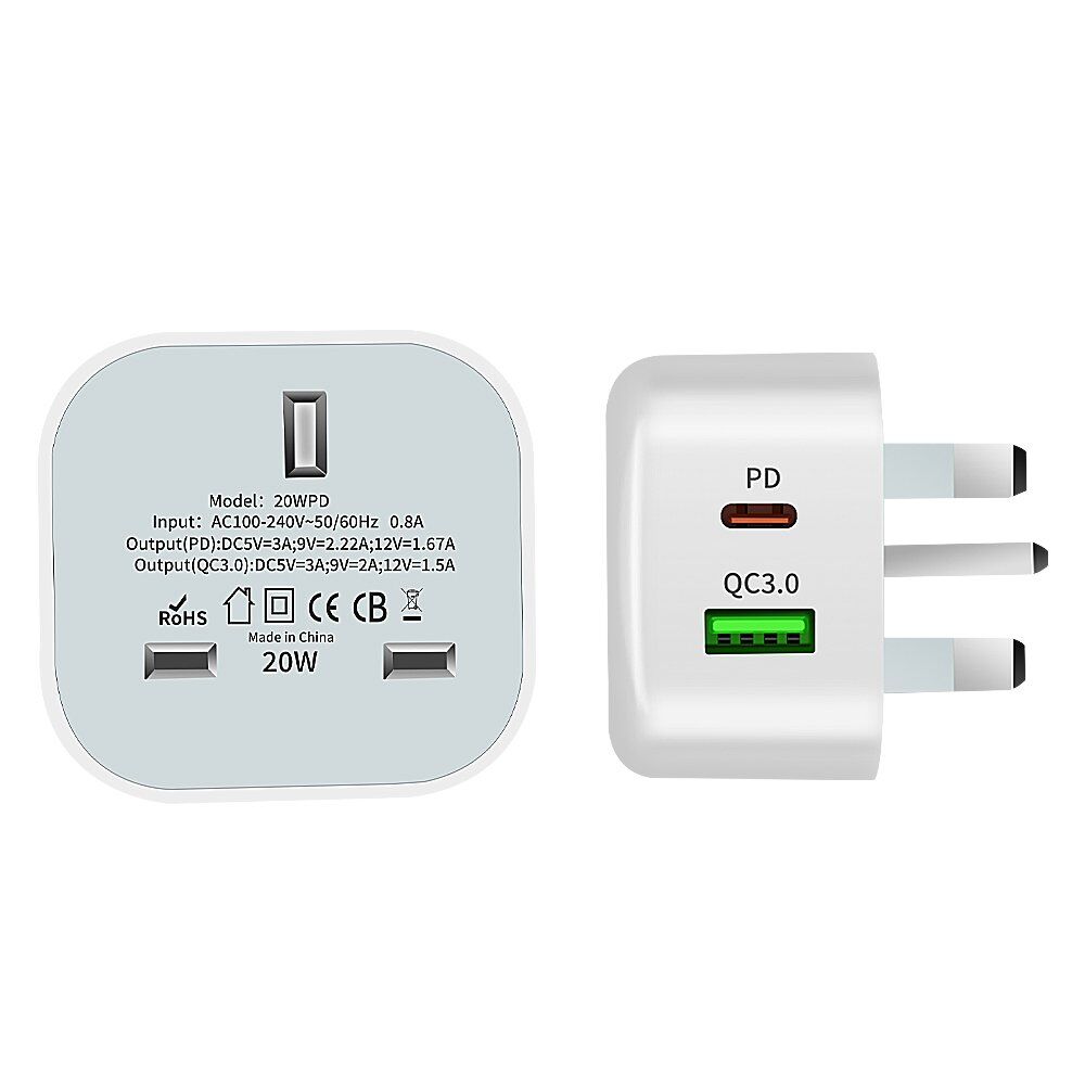 Product Name: 20W 2-Port QC3.0+Type-C USB Wall Charger