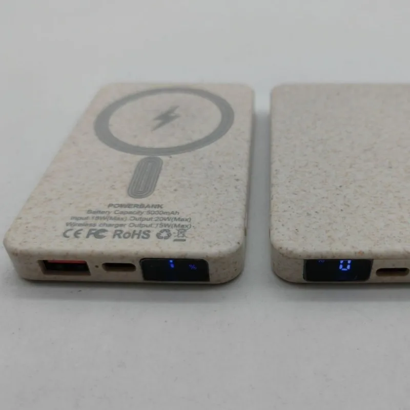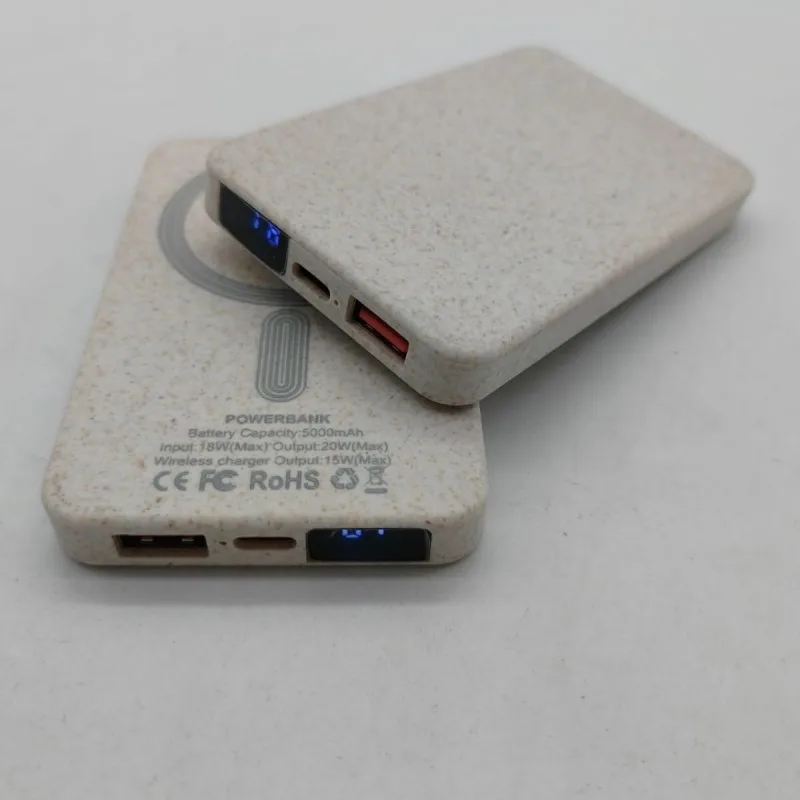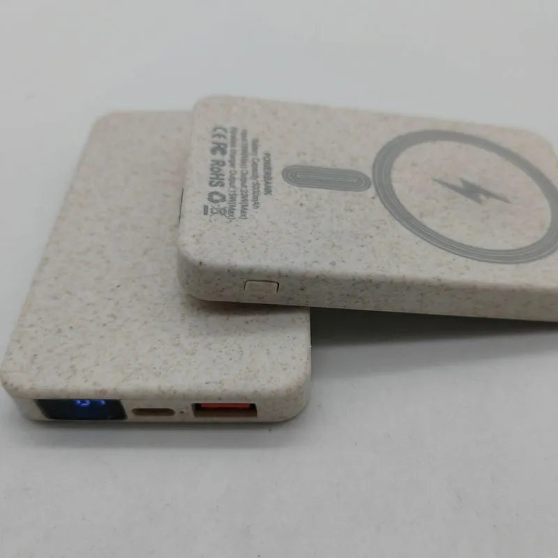 wheat straw magnetic power banks designed for sustainable branding and promotional use.